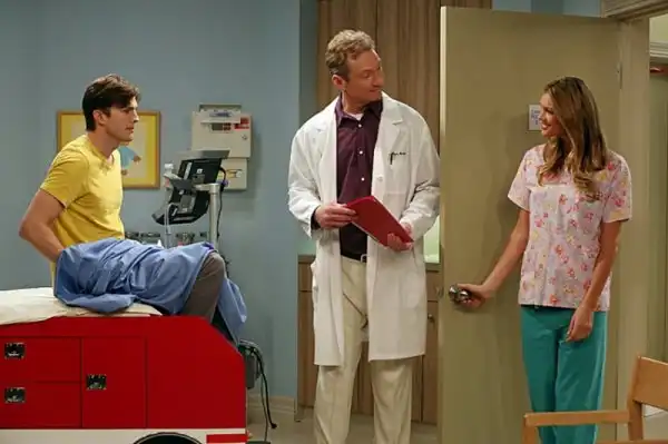 Келли пробует себя в качестве актрисы. Эштон Катчер, Райан Стайлз и Келли Рорбах в сериале «Два с половиной человека»