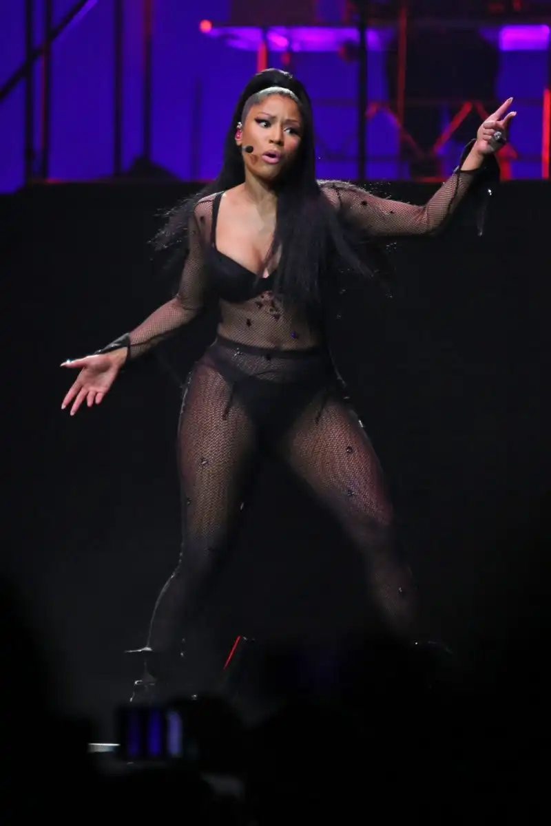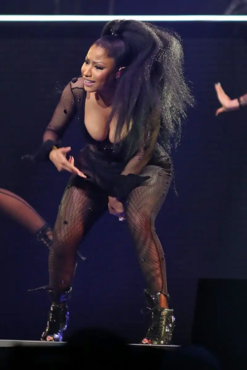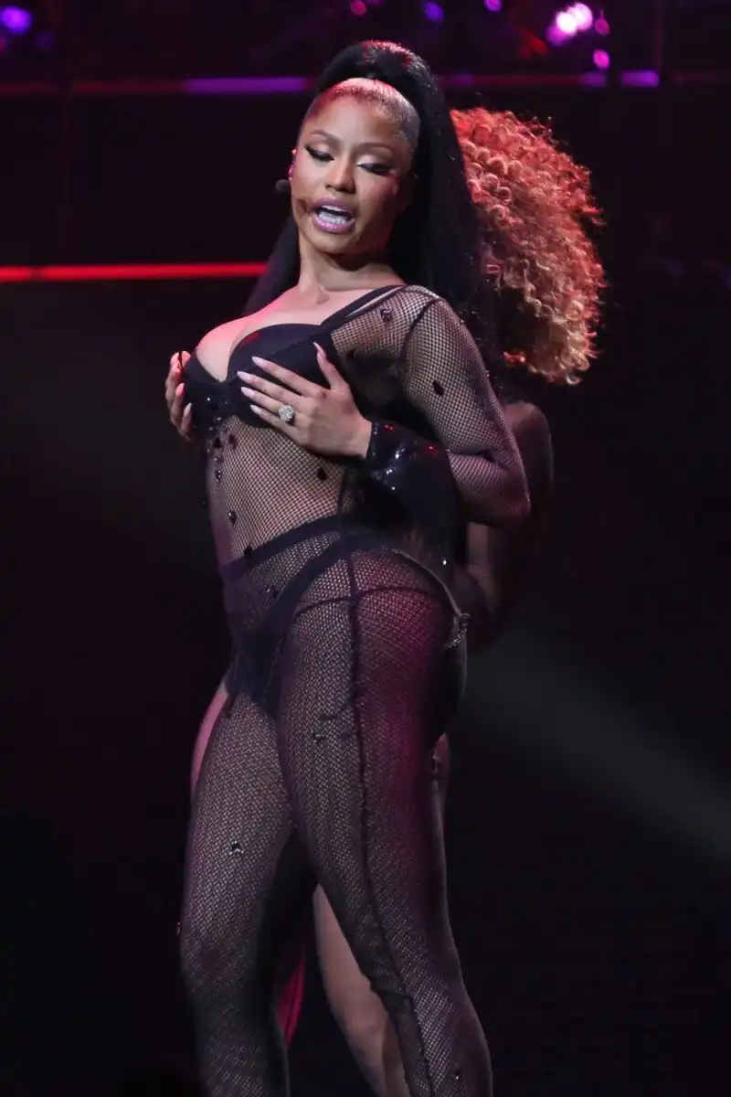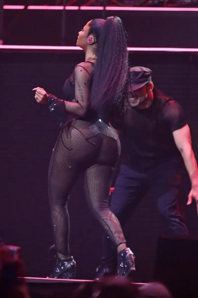 32-летняя американская певица Ники Минаж (Nicki Minaj) продемонстрировала свои пышные формы в откровенных нарядах во время концерта в Pinkprint Tour Ванкувер, Канада.