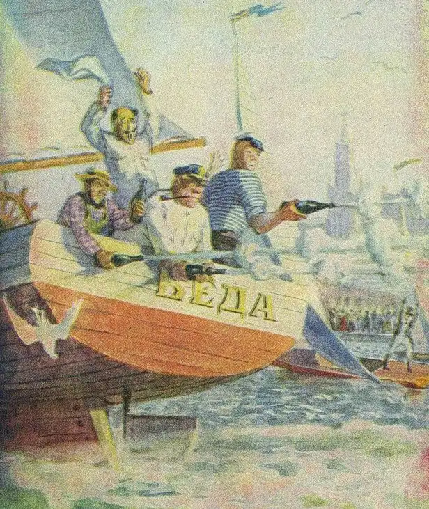 Чтобы разобраться, где правда, а где вымысел Андрею Некрасову предстояло погрузиться в другую историю, произошедшую двумя годами ранее. В 1924 году известный к тому времени русский мореплаватель, художник маринист автор книг о морских странствиях Дмитрий Лухманов становится начальником Ленинградского морского техникума. В те времена, он уже давно не помышлял ни о каких морских путешествиях и преподавал навигацию. Среди курсантов Ленинградской мореходки того времени Иван Манн и тот самый Андрей Вронский веселая компания будущих прототипов. Манну была уготована литературная судьба старшего помощника Лома. А Вронский идейный вдохновитель писателя Некрасова станет одним из прототипов капитана Врунгеля. Однажды к Дмитрию Лухманову пришли ученики и сказали, что они хотят построить яхту и отправиться на ней вокруг света в честь и славу молодой советской республики.