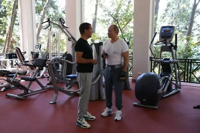 Воскресное утро для президента России Владимира Путина и премьер-министра Дмитрия Медведева началось с совместной тренировки, которую они провели в тренажерном зале резиденции Бочаров ручей. После тренировки глава государства и председатель правительства отправились жарить барбекю, а затем они позавтракали на летней террасе, обсудив ряд актуальных вопросов.