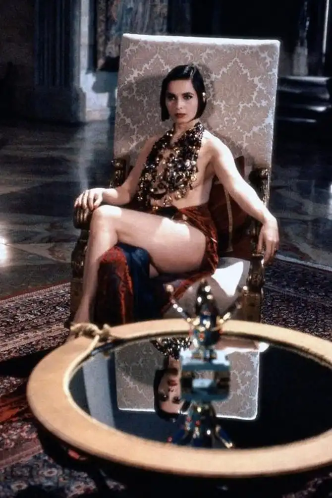 Как бы вы одевались, если бы были самоуверенной и тщеславной старухой, которая благодаря волшебному снадобью в 70 с лишним лет сохраняет тело молодой женщины? Вероятно, очень и очень откровенно. Чтобы вам не нужно было дополнительно раздеваться для демонстрации преимуществ вашего препарата. И именно так в гротескной «черной» комедии одета Лизл фон Руман – героиня Изабеллы Росселини, которая появляется в кадре в кроваво-красной юбке и в массивном ожерелье на обнаженной груди. Интересно, в какой степени этот эротичный наряд повлиял на присуждение Росселини жанровой премии «Сатурн» за лучшую роль второго плана? Ведь в остальном это вполне стандартная, хотя и убедительно сыгранная роль.