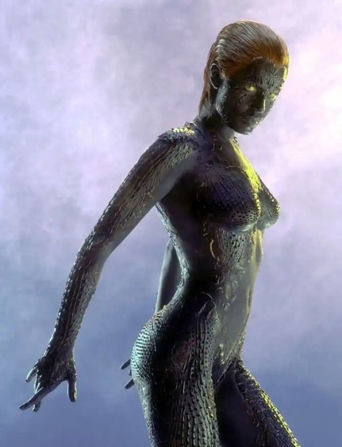 Может ли синяя женщина быть эротичной? Очень даже может! Если ее играет Ребекка Ромейн (в то время – Ребекка Ромейн-Стамос), и если в кадре она фактически голая, покрытая только специальной краской и пластическим гримом. Режиссер Брайан Сингер сделал Ромейн символом супергеройского и суперзлодейского эротизма, но ради этого актрисе пришлось пережить немало неприятных часов. И дело было не только в сложности и продолжительности процедуры нанесения грима, но и в том, что облик Мистик скрывали от папарацци, и потому актрису в перерывах между дублями прятали в закрытой комнате без окон. В то время как другие звезды «Людей Икс» во время съемок сдружились, Ромейн с ними даже толком не смогла познакомиться.
