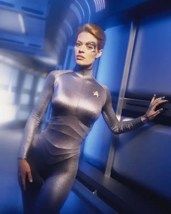 Это не хит-парад героинь сериалов, и мы специально не изучали раскованных телегероинь. Но поскольку Джери Райан недавно вошла в нашу лучшую двадцатку актрис с самой внушительной грудью, то мы не могли обойти стороной ее героиню под кодовым именем «Седьмая-из-девяти» (в кибернетической цивилизации Борг, которая «ассимилировала» Седьмую, когда та была человеческой девочкой, все существа называются по номерам, поскольку не являются отдельными личностями и управляются общим разумом). Седьмая была введена в сюжет «Вояджера» в начале четвертого сезона, и это было сделано как для того, чтобы снабдить шоу саркастичным персонажем-контрапунктом для насквозь «правильной» команды заглавного космического корабля, так и для поднятия сексапила шоу, страдающего от низких рейтингов. Поэтому Райан в кадре поначалу носила облегающий серебристый костюм, подчеркивающий ее прелести. Позднее ее наряды стали чуть менее вызывающими, но все равно более чем откровенными для подросткового фантастического шоу.