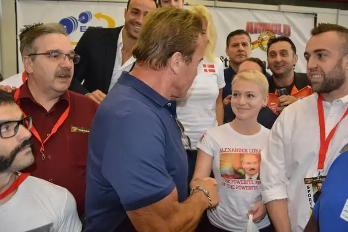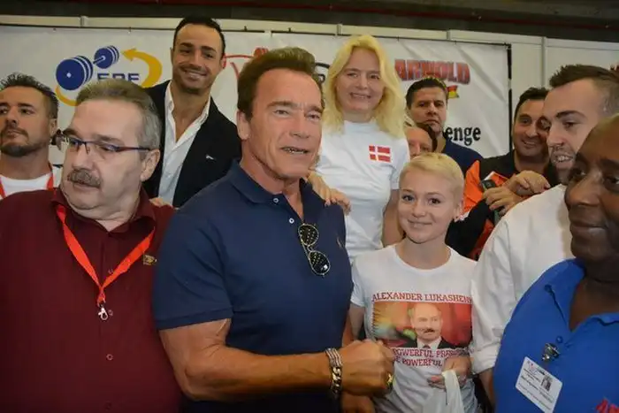 В Мадриде на турнире «Арнольд Классик Европа 2015» сразу два рекорда установила 16-летняя минчанка Александра Бурыкина. Белорусская спортсменка выступала в соревнованиях по пауэрлифтингу в весовой категории до 63 кг. Ее рекорды в своей весовой категории - присед 135 кг и сумма троеборья - 347,5 кг. И хотя в тройку сильнейших участниц турнира Александра не вошла, в своей весовой категории она была лучшей, а ее выступление запомнилось не только публике, но и организаторам данного мероприятия, которые представили девушку Арнольду Шварценеггеру, основавшему этот турнир в 1988 году. Известный актер обменялся со спортсменкой рукопожатием, пожелал ей успехов в будущем, а Александра подарила ему футболку с изображением Александра Лукашенко. Арнольд признался, что давно собирается посетить Белоруссию и восхищается ее народом и президентом, как сильным политиком.