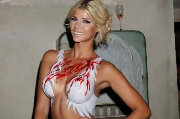 31-летняя немецкая актриса, модель, телеведущая, диджей и певица предстала в оригинальном наряде на премьере “Casting des Todes” 26 сентября.