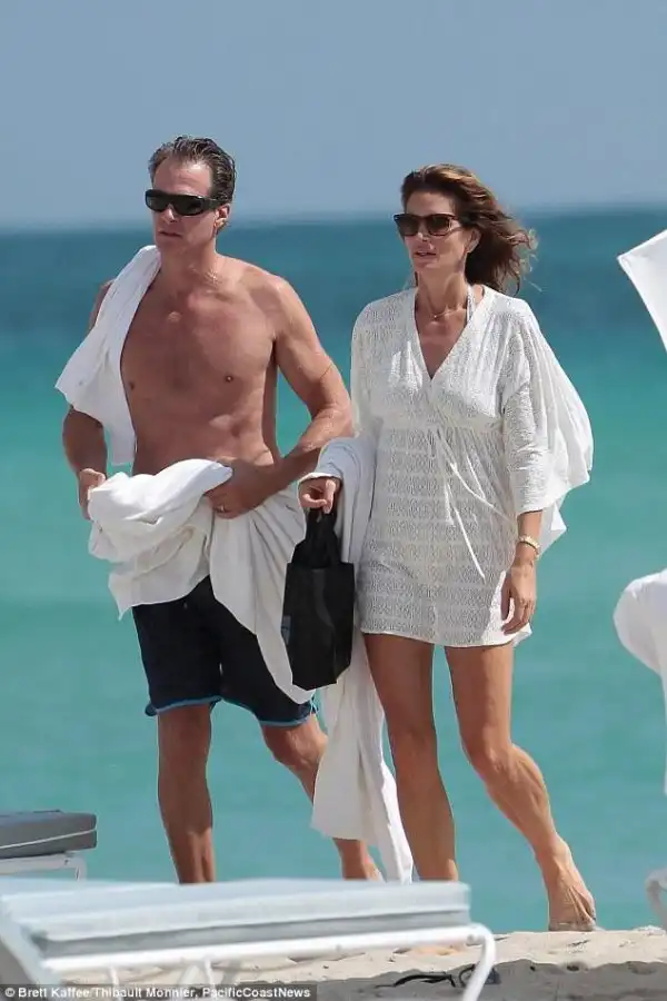 49-летняя Синди отдыхала с мужем Ренди Гербером на пляже в Майами. Папарацци запечатлели несколько кадров известной модели в купальнике.
