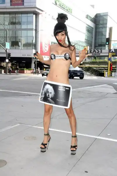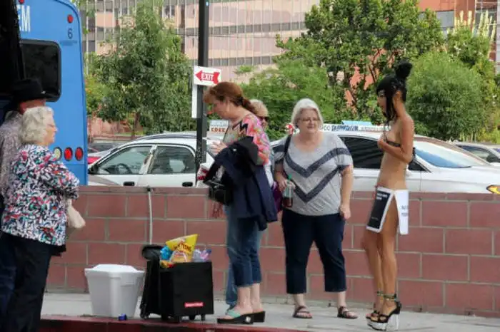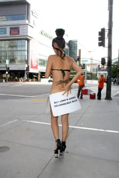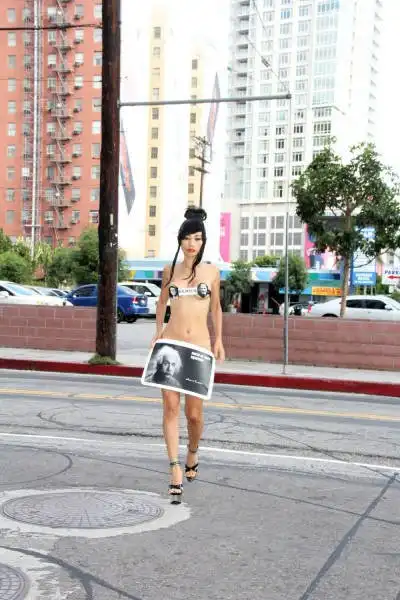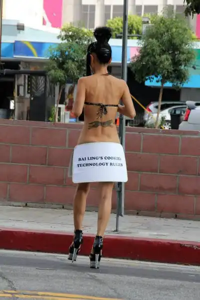 49-летняя актриса Бай Лин в очередной раз не упустила возможности оголиться на публике. На сей раз в откровенном наряде она явилась на церемонию вручения премии The Geekie Awards 2015, однако, перед этим в подобном виде женщина позировала перед камерами на улицах Лос-Анджелеса, удивляя своей выходкой прохожих и автомобилистов.