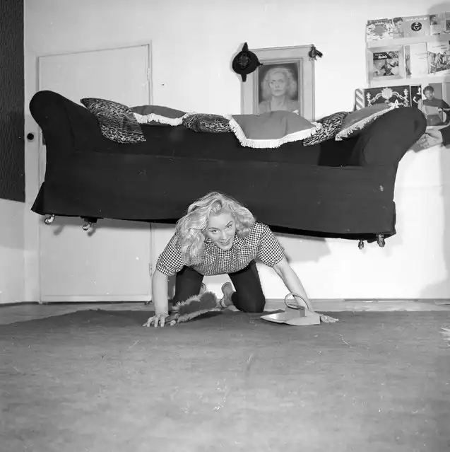 Гламурная силачка Джоан Роудс, осуществляет уборку дома в