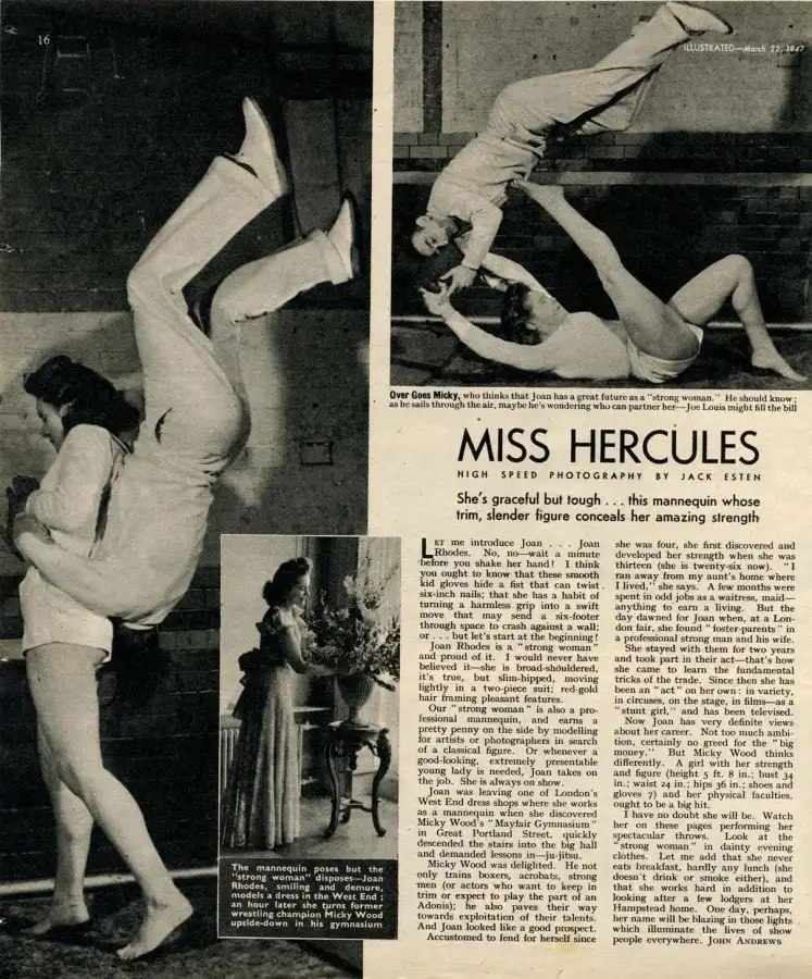 В 1950-е и 1960-е годы Джоан Роудс была очень популярна и отмечена, как женщина исключительной силы, она ошеломила аудиторию со своими удивительными подвигами силы, потрясающей внешностью и удивительно стройной фигурой, одевалась в платье или в трико с блестками, в чулках в сеточку, и на высоких каблуках, что заставляла трепетать и оставаться мужские сердца неравнодушными, но также одновременно была пуританкой и ужасно застенчивой.