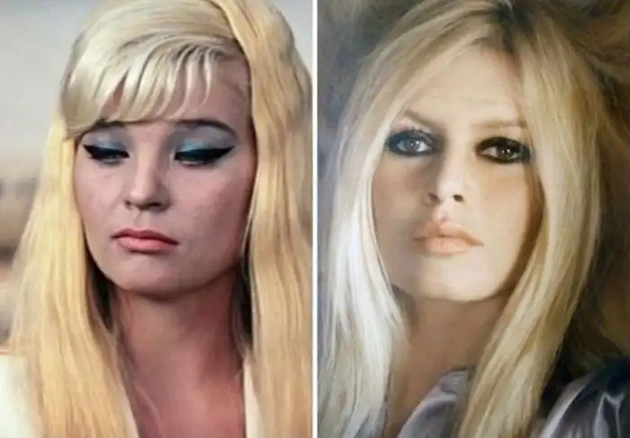 Юлию Высоцкую было бы неправильно назвать советской актрисой, так как в кино она дебютировала в 1992 году, но, тем не менее, двойник в Голливуде у неё тоже есть