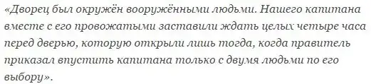 Это, однако, вызвало совсем иную реакцию, нежели ту, на которую рассчитывал да Гама – советники заморина сдержанно улыбнулись, свита же, включавшая и арабских купцов, даже не сочла нужным сдерживать смешки. Где-то среди этой кучки торгашей прозвучало «Беднейший купец Мекки даёт больше», и слова эти были для Гамы будто звонкая пощёчина. Глава делегации, советник заморина, сказал, что эти дары не годятся, но португальцы могли бы подарить золото, которого, по словам их предводителя, так много в Португалии. Советник откровенно издевался над португальцами, которые в этом богатом крае выглядели как «бедные родственники». Если бы он лучше знал Васко да Гаму, то, несомненно, трижды проклял бы свой язык за эти насмешки, но португальцев в Каликуте никто в те дни всерьёз не воспринимал.