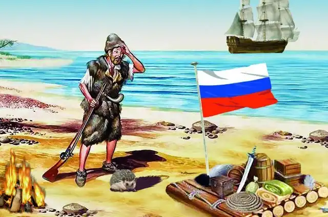 Действительно, какой же Робинзон без Пятницы? 12 апреля Сергей Лисицын прогуливался по берегу, оценивая последствия весенних штормов, и увидел лежащего ничком человека. Без сил и чувств. Выяснилось, что Василий, так звали несчастного, – с транспорта, шедшего в Русскую Америку. Судно дало течь, все с него сбежали, а его с сыном забыли. Корабль нашли неподалёку. Помимо 16-летнего паренька на нём оказались две овчарки, коты, 8 холмогорских коров, бык, 16 волов, 26 овец. Запасы продуктов, инструменты, семена ячменя и ржи. А ещё оружие, телескоп, две подзорные трубы, самовар, строительный и огородный инструмент.