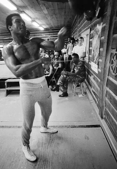 Фотограф Питер Саймон (Peter Simon) обнародовал редкие снимки, которые были сделаны им летом 1974 года в Заире, где 30 октября состоялся боксерский бой между Мохаммедом Али и Джорджем Форманом. Этот поединок прозвали «Грохотом в джунглях», и, по мнению многих экспертов, его можно считать лучшим поединком XX века. Питер провел с Мохаммедом Али 2 дня, фотографируя тренировки и досуг легендарного боксера, который одержал победу в том поединке.