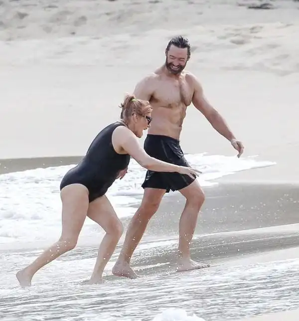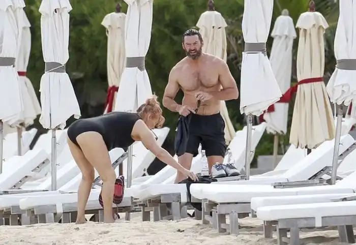 Отмечая 20-ю годовщину своего брака, 47-летний актер Хью Джекман и его 60-летняя супруга Деборра-Ли Фернесс отправились на Карибы. Минувшее воскресенье пара провела на пляже Сен-Барте, где и была замечена любопытными папарацци. Практически сразу эти фото, которых вы не найдете на странице Хью Джекмана в Instagram, были опубликованы в сети.