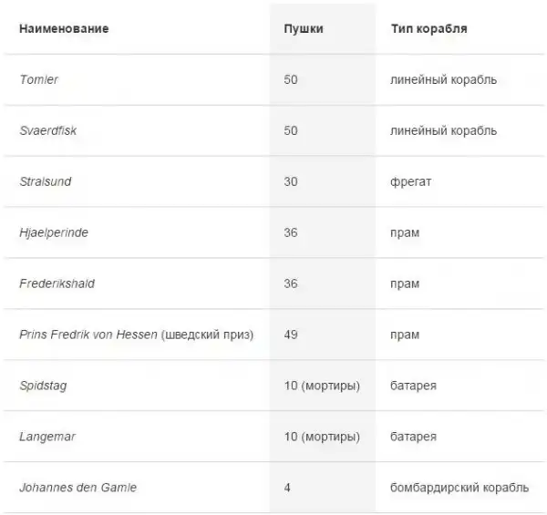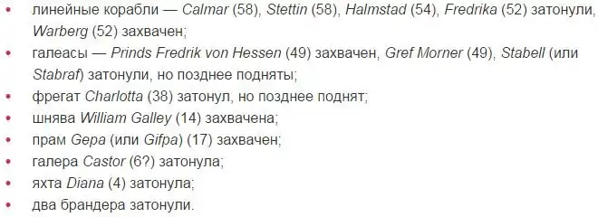 Шведские корабли и их судьба после взятия Марстранда