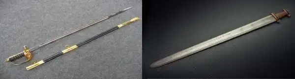 Парадная шпага, dress sword (слева) и шведский палаш, karolinerverge