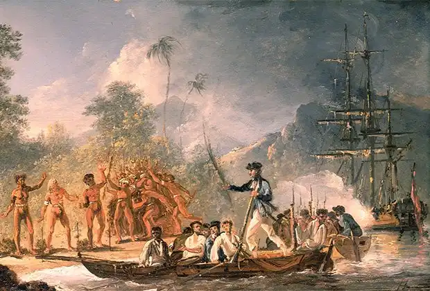 «Высадка в Танне». Картина Уильяма Ходжеса. Один из характерных