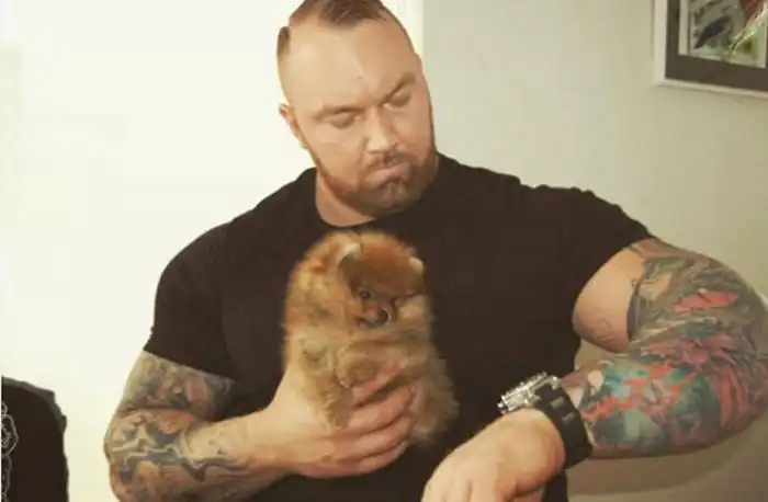Исландский стронгмэн и актер Хафтор Бьёрнссон, играющий роль Григора «Горы» Клигана в сериале «Игра престолов», завел себе домашнего питомца. Несмотря на то, что рядом с этим великаном ростом более 2 метров и весом 180 кг наше воображение рисует огромного волкодава, выбор Хафтора пал на померанского шпица. Своего любимца актер назвал Астериксом и в шутку зовет его «мой лев». Удивительно, но этот пушистый комочек радости превращает даже этого брутального исполина в очаровательную «няшу».