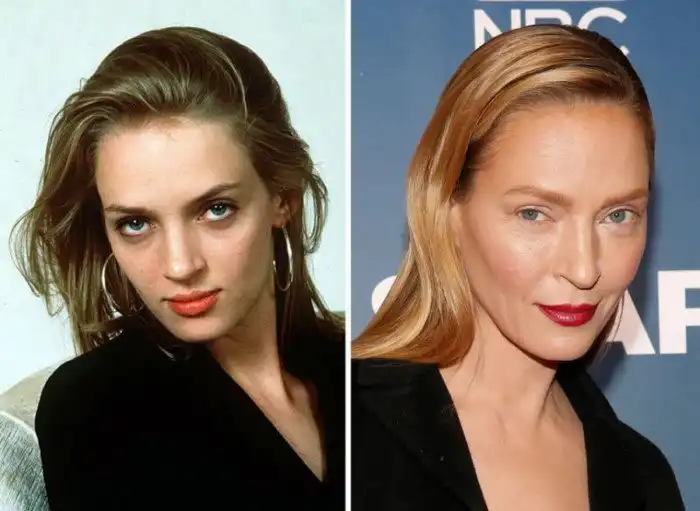 Ума Турман. У Умы Турман всегда была интересная внешность: красивая бледная кожа, симпатичные скулы, как будто слегка выгоревшие на солнце волосы. Но в 45 лет она вдруг стала выглядеть совсем не так, как еще каких-то лет пять назад. На одном из телевизионных шоу звезда отказалась признать, что она что-то сделала со своим лицом, сказав лишь, что ее внешний вид — результат процессов, которым не один год. К сожалению, изменения в лице Умы Турман настолько разительны, что дело тут не в неудачном макияже. Гладкий лоб и сильно натянутая улыбка — фирменные симптомы ботокса. Похоже, это теперь называется «экспериментальный макияж».
