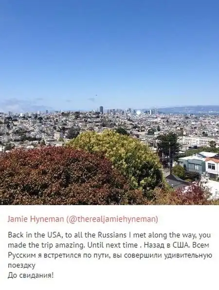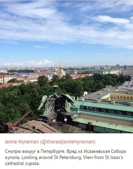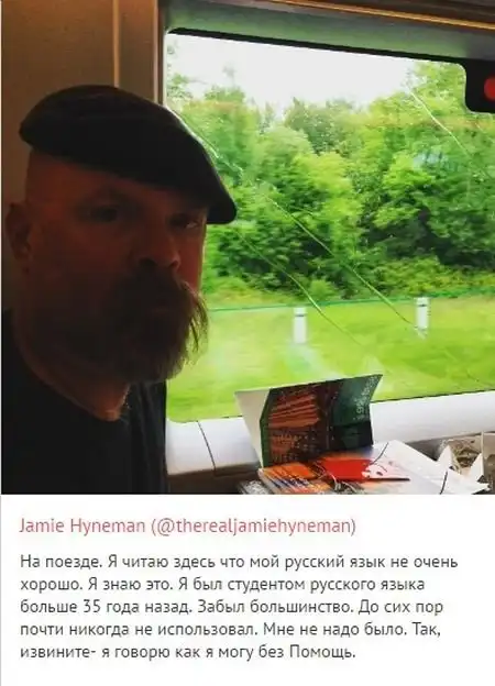 Ведущий популярной телепередачи «Разрушители легенд» Джейми Хайнеман поделился своими впечатлениями от путешествия по России. Примечательно, что свои заметки в социальной сети он делал на двух языках, на английском и русском.