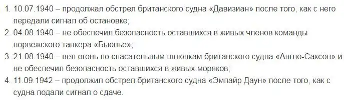 13 июля 1940 года таким же образом был расстрелян английский пароход «Кинг Джон» (King John, 5228 брт) – потери составили три человека убитыми и шестеро ранеными. После этого на «Виддере» скопилось около 160 пленных. Мало того что это доставляло неудобство в операциях рейдера – как оказалось, фон Руктешелль испытывал к некоторым из них настоящее отвращение. Он сделал запись, что большое количество из них составляют «…югославы, португальцы, мальтийцы и испанцы – грязный и мерзкий сброд». Поэтому не удивительно то, как он поступил с этим «сбродом» – все пленные были посажены в шлюпки последней жертвы, к которым присоединили самую большую шлюпку «Виддера».