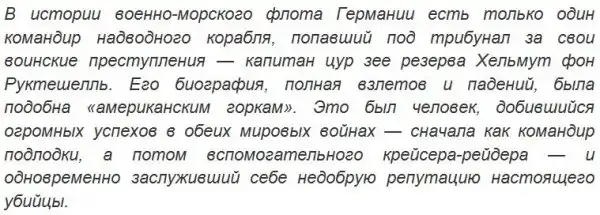 Это был самый неординарный и разносторонне образованный из командиров рейдеров кригсмарине. В отличие от их большинства, он не был кадровым офицером, а пришел из резерва, имея за плечами карьеру кайзеровского подводника с довольно темным прошлым. Он непонятно как получил должность, на которую назначались тщательно отобранные командиры, имевшие гораздо больший опыт командования крупными надводными кораблями. Он был первым из них, кто получил Рыцарский крест за успехи в рейдерстве, и единственный, кто совершил два похода и при этом не потерял свои корабли. Член НСДАП и одновременно последователь религиозного течения, преследовавшегося нацистами. Философ, одаренный музыкант, резчик по дереву и живописец – он приказывал стрелять по торговым судам без предупреждения. Сын евангелического пастора, он сам проводил религиозные службы по погибшим от его огня морякам и, в то же время, отказывался искать выживших на месте потопления и высаживал пленных в открытом море в тысяче километров от ближайшей земли. Он требовал смертной казни своему офицеру прямо на борту корабля и мог сочинить музыкальную кукольную пьесу для экипажа. Он мог перечить вышестоящему командованию в выполнении приказов и, в то же время, руководствоваться тактикой, которая не была ему предписана и, в конце концов, привела его к приговору.