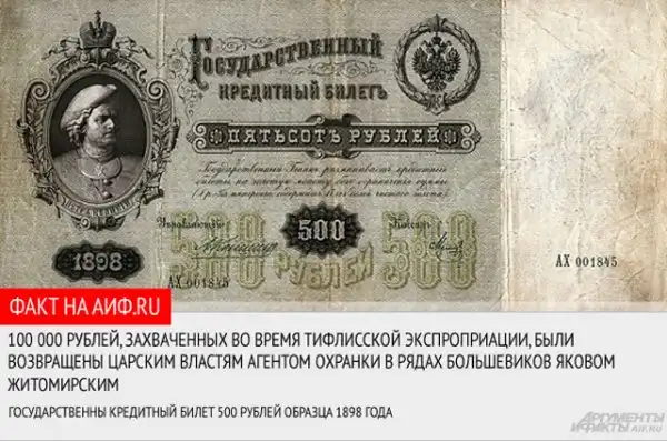 Дело в том, что уничтожить деньги было поручено большевику Якову Житомирскому, входившему в окружение Ленина. Однако Житомирский был по совместительству и агентом царской охранки. Благодаря его помощи в руки властей попали не только деньги, но и сам руководитель боевой группы большевиков Камо, которого арестовали в Германии с оружием и взрывчаткой по наводке Житомирского. Впрочем, Камо в конечном итоге снова сумел бежать.