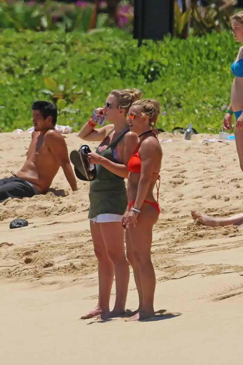 34-летняя американская поп-певица Бритни Спирс (Britney Spears) продемонстрировала подтянутую фигуру в бикини на пляже во время отдыха на Гавайях.