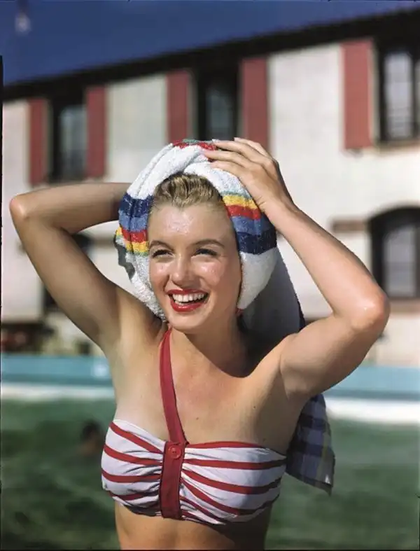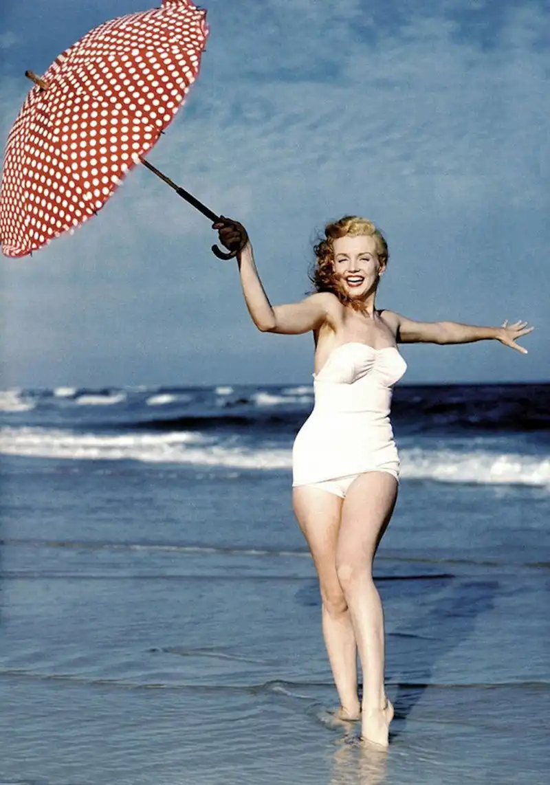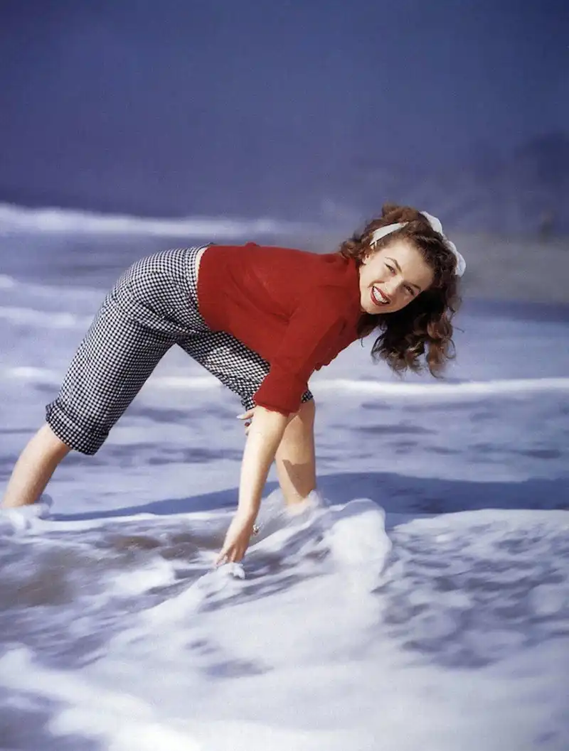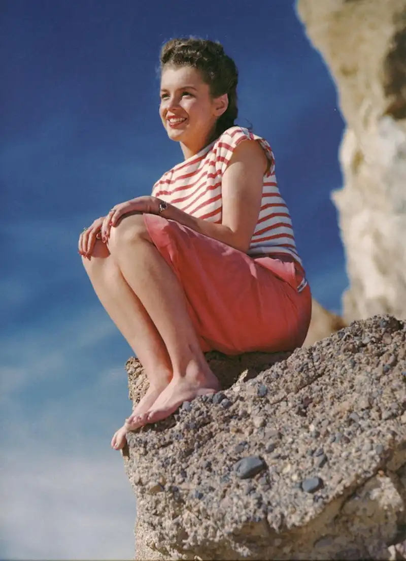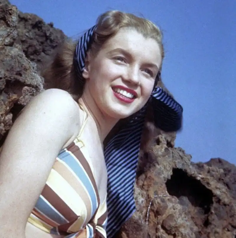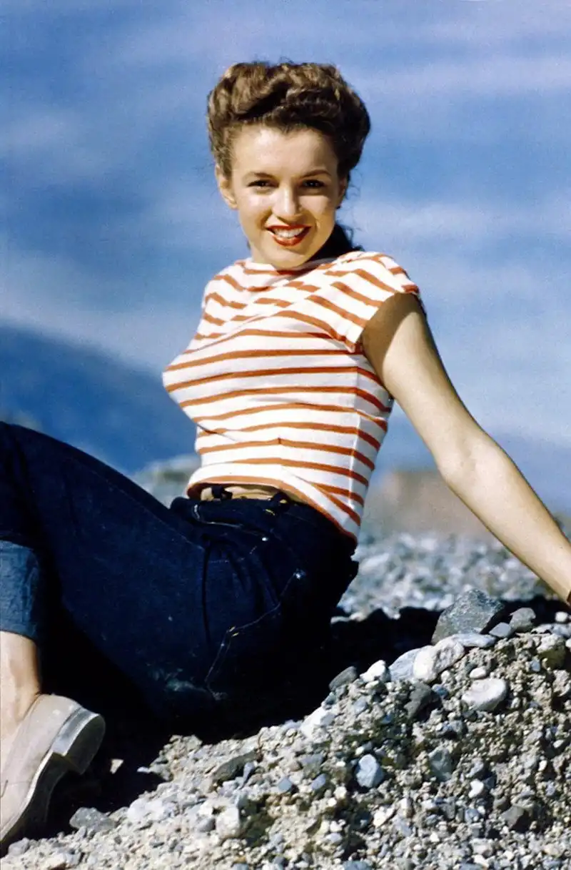 В 1945 году у Нормы Джин Бейкер случился роман с фотографом по имени Андре де Динес - отсюда множество профессиональных фото начинающей актрисы. Ему ли она обязана успешной карьерой пин-ап модели - не станем гадать, но очевидно, что без этой короткой карьеры не возник бы феномен ММ - даже не суперзвезды, а богини.