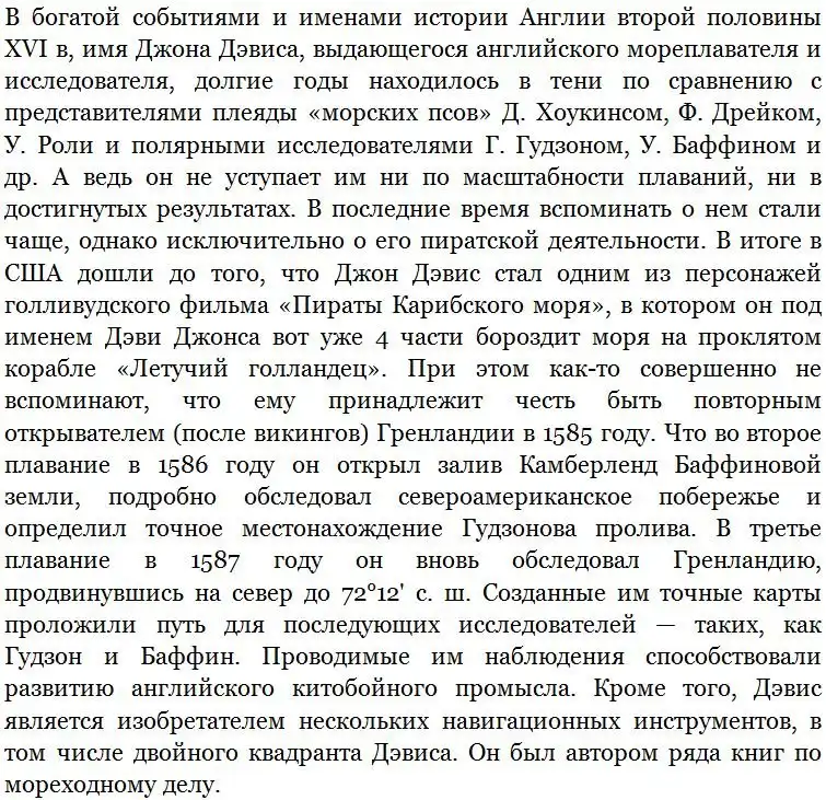 «Судовождение обязано своим развитием Дэвису более, чем кому-либо из англичан...»
