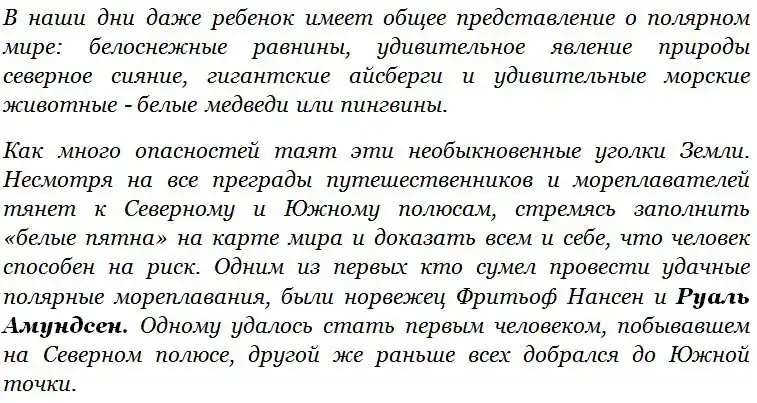 В феврале 1911 года, когда в Южном полушарии закончилось лето, шхуна «Фрам» достигла берегов Антарктиды. В первую очередь мореплаватели организовали базу и обустроили несколько складов. С наступлением зимы основная часть экспедиции осталась пережидать ее в лагере. Остальная группа людей, состоящая из четырех человек 19 октября 1911 года, на собачьих упряжках покинула базу, устремляясь в глубь континента. Команда преодолевала до 40 км в день и 14 декабря 1911 года достигла своей цели - Южного полюса. После трехдневных наблюдений, проведенных в этой точки планеты, группа исследователей во главе с Амундсеном вернулась в лагерь. Норвежская общественность ликовала. Все поздравляли Амундсена с подвигом. Правительство поощрило мореплавателя и первооткрывателя щедрой наградой.