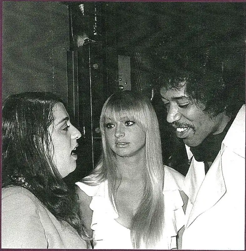 Mama Cass, Jimi Hendrix and girl friend, Cathy, 1968