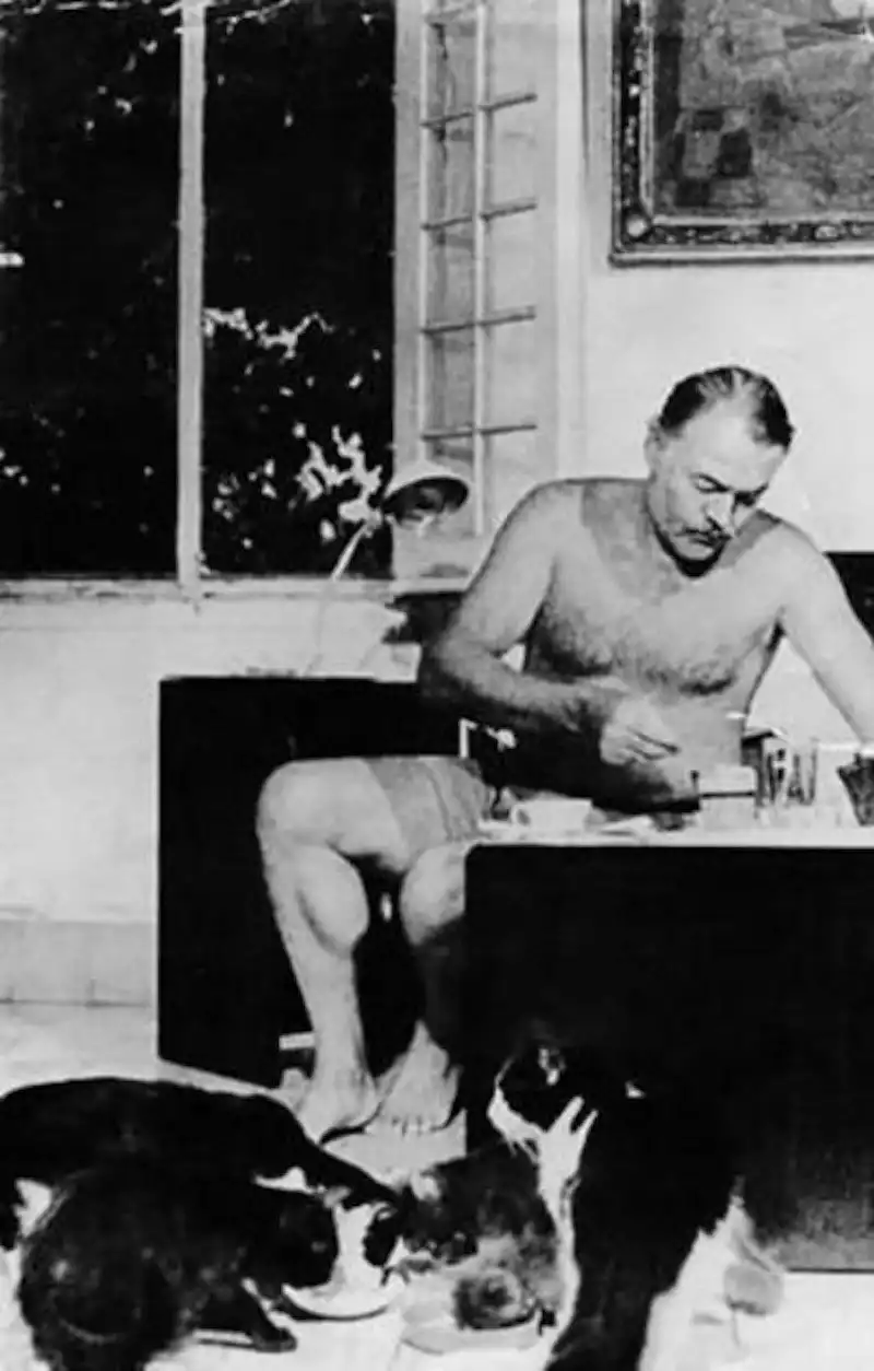 Позднее, в 1935 году капитан Стенли Декстер подарил писателю белого шестипалого котенка по имени Снежок, с которого и пошла история кошачьего рая в доме нобелевского лауреата в Ки Уэст (Флорида), где жили десятки котов. И респект государству, объявившему это место, вместе с живущими там котами, национальным достоянием, после того как Эрнест Хэмингуэй совершил последний и самый сильный поступок в своей жизни.