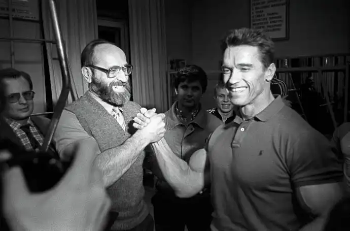 Кумир молодежи 80-х, Арнольд Шварценеггер прилетел в Советский Союз всего на три дня – на съемки московских эпизодов фильма «Красная жара».О творческих планах киногруппы и засекреченных съемках в Москве почти не говорили. Зато Шварценеггер довольно подробно рассказал, какая пара пунктов кратковременной программы в столице СССР заботила его больше всего: покупка жене горностаевой шубы и встреча с прославленным штангистом Юрием Власовым.