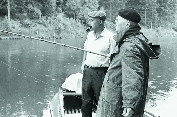 Писатель Константин Симонов (в центре) и Маршал Советского Союза Иван Конев на рыбалке. 1966 год. Фото Валентина Мастюкова /Фотохроника ТАСС/