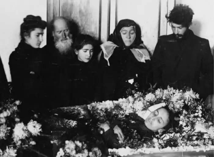Сталин на похоронах своей первой жены Като Сванидзе, 1907