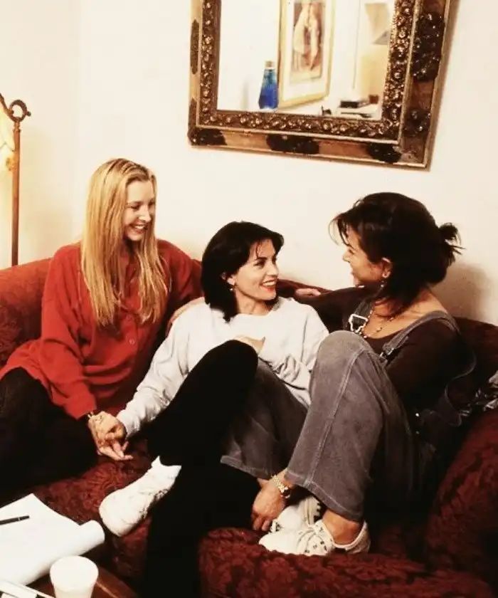 Лиза Кадроу, Кортни Кокс и Дженнифер Энистон в перерыве на съемках телесериала "Друзья", 1990-ые