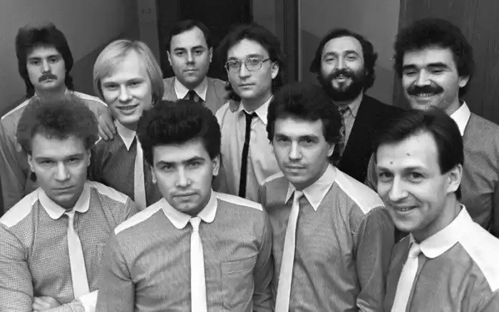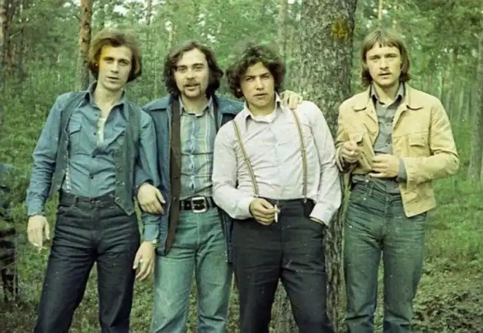 Задолго до создания группы “Любэ” Николай Расторгуев участвовал в других музыкальных коллективах. Например это фотография, датируемая 1979 годом, показывает нам четырёх молодых людей, участников группы “Шестеро молодых”.