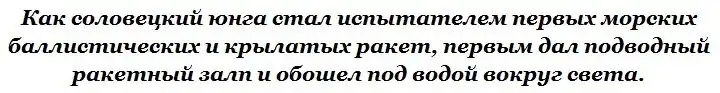 Адмирал Вадим Коробов и после отставки скупо делился воспоминаниями о том, как прошел первый в мире морской пуск первой в мире баллистической ракеты для подводных лодок. Не слишком разговорчивы и другие участники испытаний. Но некоторое представление об атмосфере первых морских запусков дает цитата из книги воспоминаний академика Бориса Чертока «Ракеты и люди»: «Пришла пора выходить в море. Базой для первой ракетной подводной лодки был Северодвинск , в начале 1950-х годов еще именовавшийся Молотовском. В этом приморском городе было все необходимое: судостроительный завод, база для наземного хранения и испытаний ракет, база для экипажей подводных лодок и, самое главное, атмосфера «максимального благоприятствования» нашим работам. Для первых морских испытаний было подготовлено семь ракет. Они были оснащены новой морской системой управления. Испытательная и пусковая стартовые системы в морском исполнении «Сатурн-М» и «Доломит» были совместно с нами и НИИ-885 разработаны морскими институтами МНИИ-1 и НИИ-10 . Для контроля за полетом на берегу были установлены телеметрические приемные станции. Наблюдение и связь осуществлялись специальным кораблем. Бортовая передающая аппаратура телеметрии и контроля орбиты была смонтирована в неотделяющейся головной части и работала на щелевую антенну.