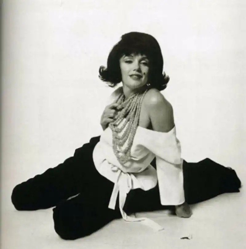 Вообще, крайне двусмысленная фотосессия, выполненная Бертом Стерном для журнала Vogue в июне 1962 года за шесть недель до ухода ММ. Двусмысленная, если принять в качестве версии ее гибели самоубийство - сознательное или по неосторожности из-за съедающей актрису тоски по мужчине, который в это время был вместе с Джеки. По крайней мере, эта версия все объясняет. Особенно если добавить к списку проблем ММ медленное сползание с Олимпа под натиском конкуренток.