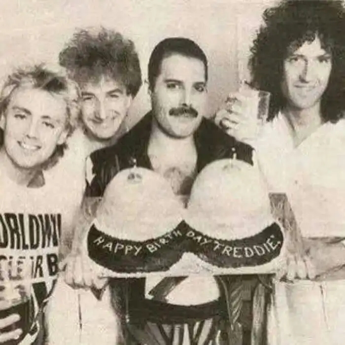 Фредди Меркьюри с праздничным тортиком, 1980-е.