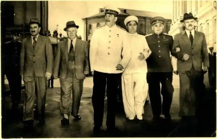 Анастас Микоян, Никита Хрущев, Иосиф Сталин, Георгий Маленков, Лаврентий Берия, Вячеслав Молотов, Москва, 1946 год.