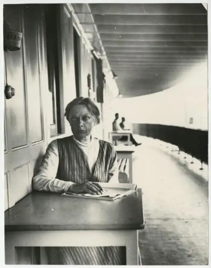 Надежда Крупская на пароходе, СССР, 1920–е.
