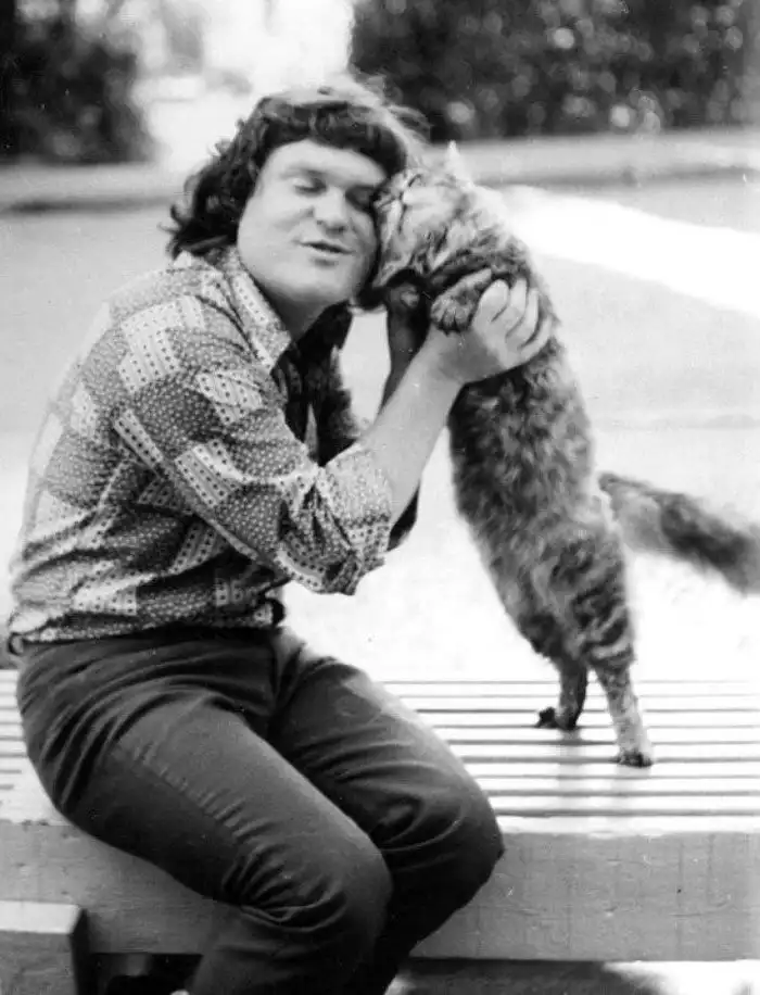 Молодой Юрий Куклачев с кошкой.