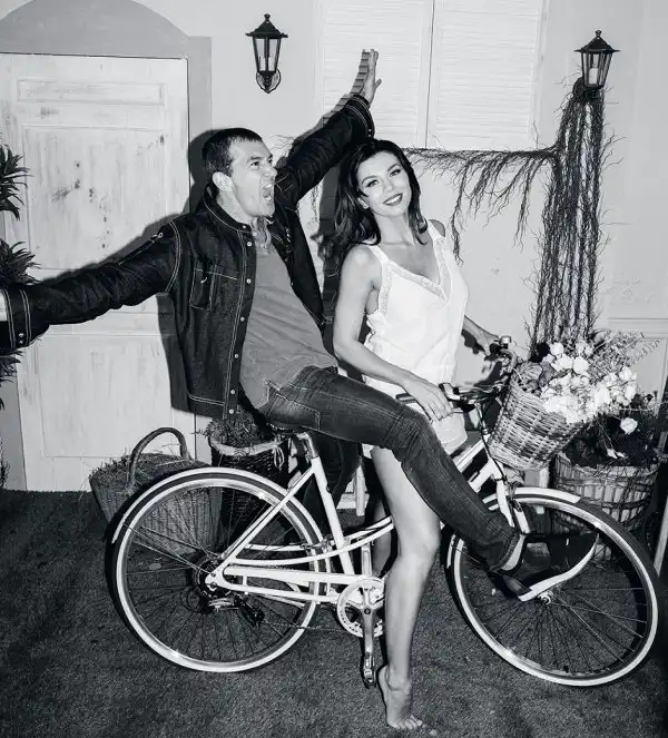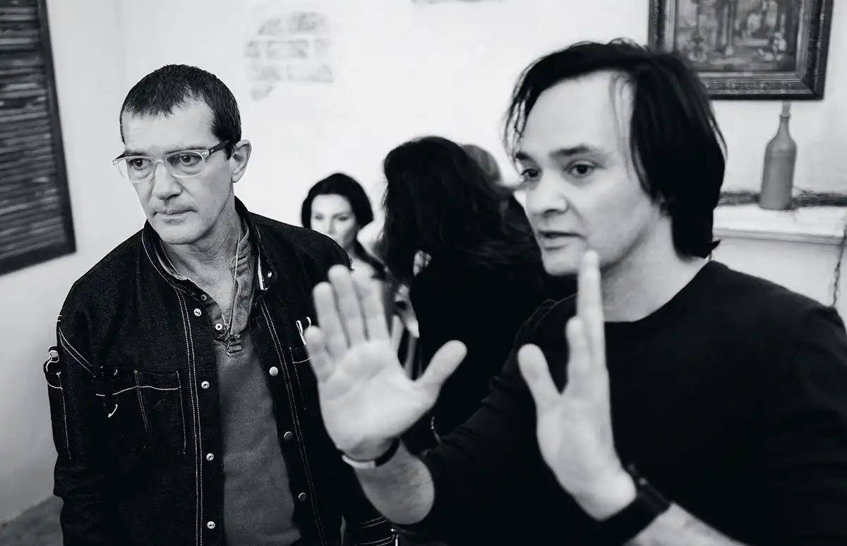 На этих кадрах (они сделаны на съемочной площадке еще одним замечательным фотографом — Тимофеем Колесниковым) отражены рабочие моменты съемки, творческие метания, озарения, помидоры, велосипед и то, как Антонио, отчаявшись привлечь внимание Анны, пшикает на нее своим парфюмом. Что не видно, но угадывается на подсознательном уровне, — это атмосфера искушения, соблазна и страсти.