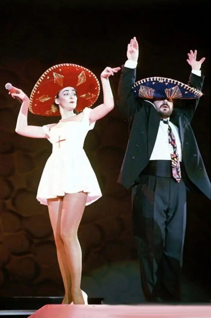 Лолита Милявская и Александр Цекало выступают на "Рождественских встречах" Аллы Пугачевой в спорткомплексе "Олимпийский", 25 декабря 1992 года