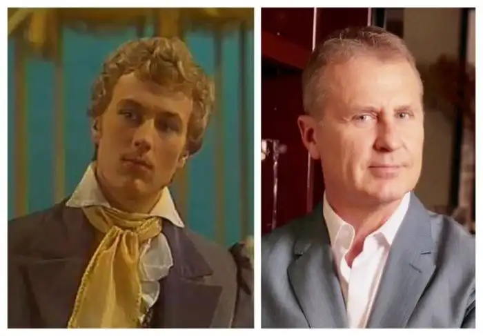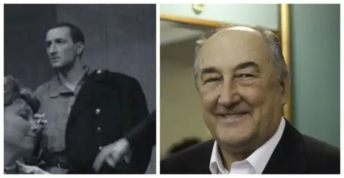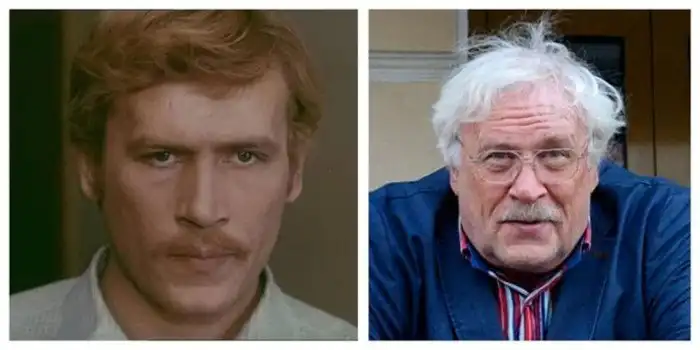 Владимир Шевельков в фильме "В моей смерти прошу винить Клаву К.", 1979 год и на съемках фильма "О чем молчат французы", 2015 год