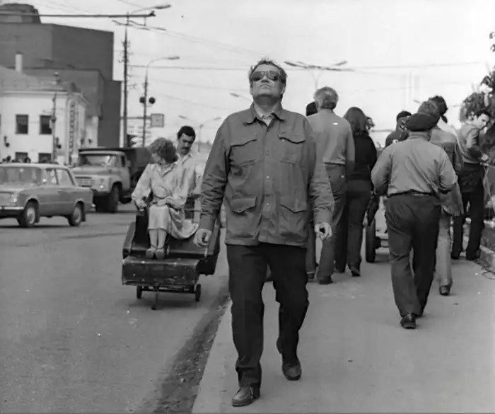 Эльдар Рязанов на сьёмках фильма "Вокзал для двоих", Москва, 1981 год.