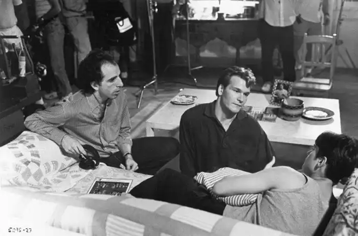 Режиссер Джерри Цукер, актеры Патрик Суэизи и Деми Мур на съемках фильма «Привидение». 1990 г. США.