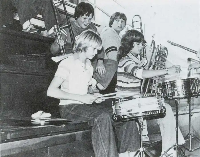 Курт Кобейн играет на барабанах в школе
